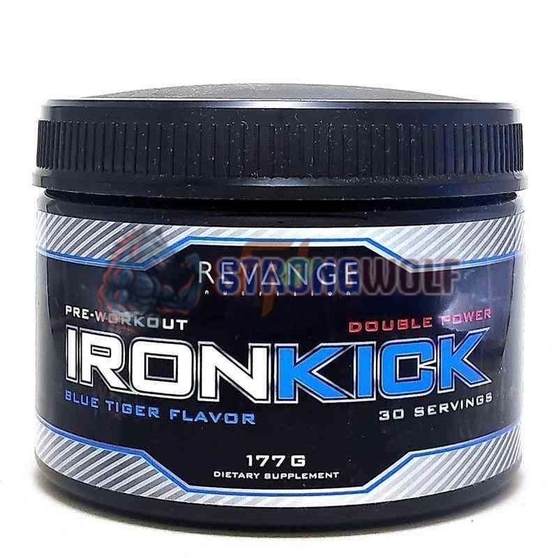 Предтренировочеый комплекс IronKick от компании Revenge Nutrition содержит базовые ингредиенты: бета-аланин, цитруллин, агматин и креатин в концентрированной форме - гидрохлорид, а также взрывную энергетическую матрицу на основе мукуна пруриенс (l-dopa), NALT, синефрина, хигенамина и горденина, обеспечивающих сильнейший выброс дофамина и адреналина. Также в составе массивные дозировки витаминов группы B, в том числе жирорастворимой формы витамина B1 - сульбутиамина, являющихся катализаторами синтеза нейротрансмиттеров. Содержит умеренное количество кофеина (150 мг) чтобы не вызывать гиперстимуляцию и перегрузку цнс.